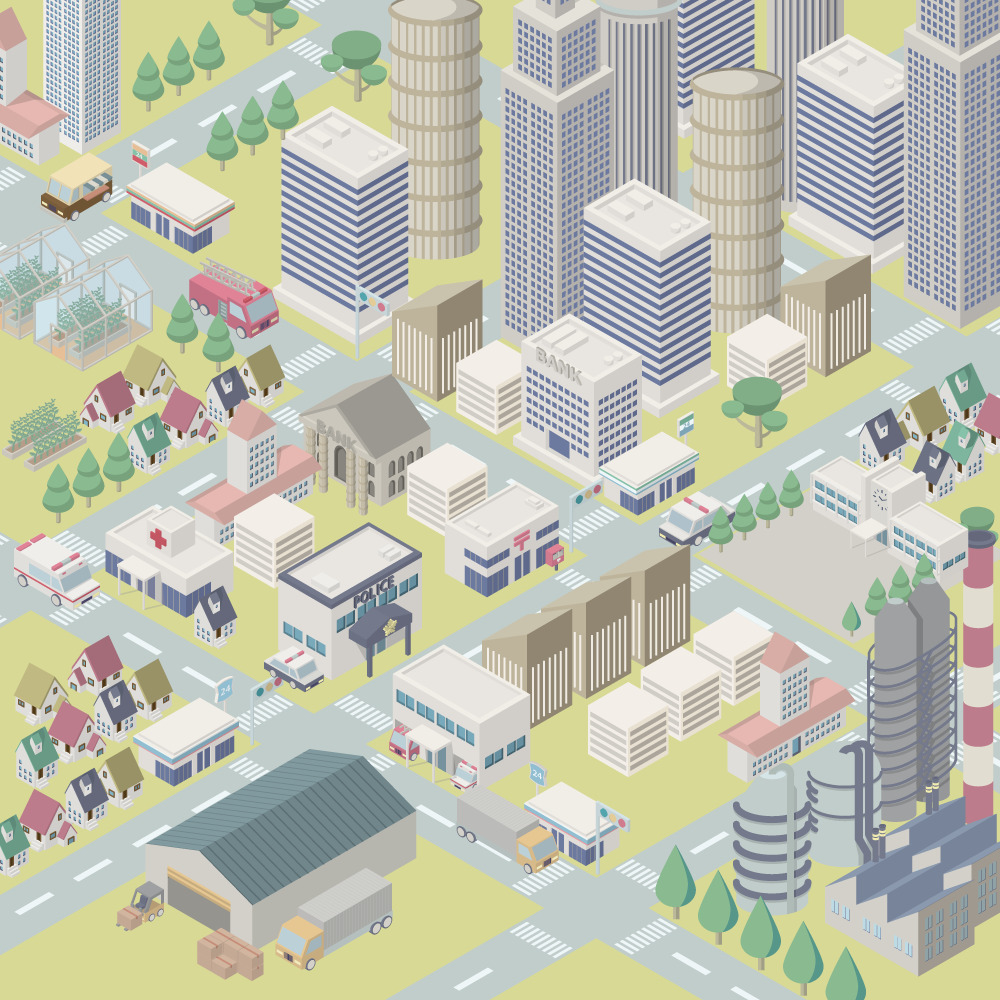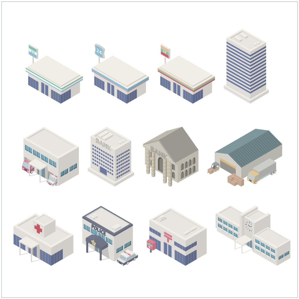建物や小物のアイソメトリックが充実「イージーイラスト」